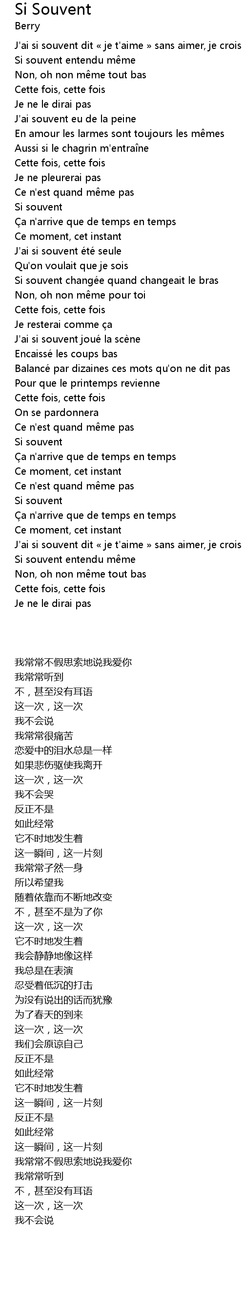| Song | Si Souvent |