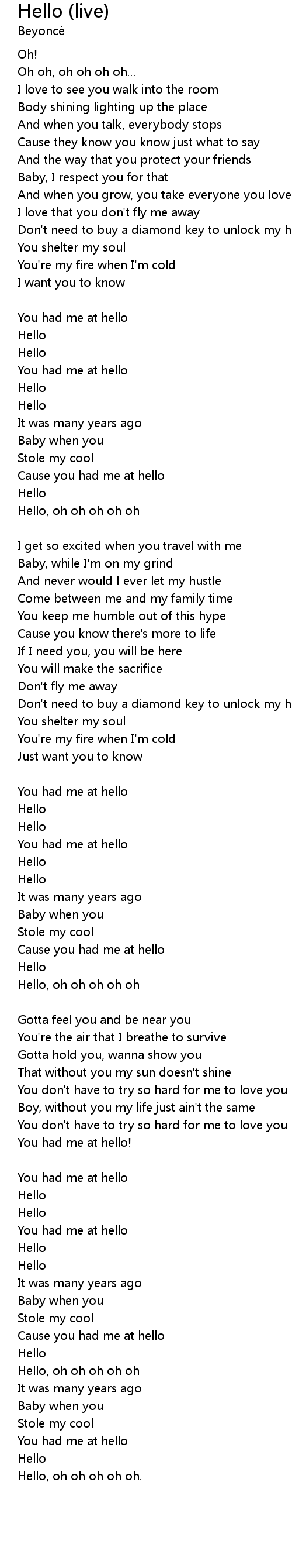 Cause you had me at hello |