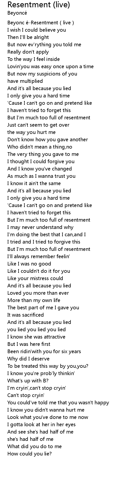 | [00:00.00] | Beyonc e Resentment live |