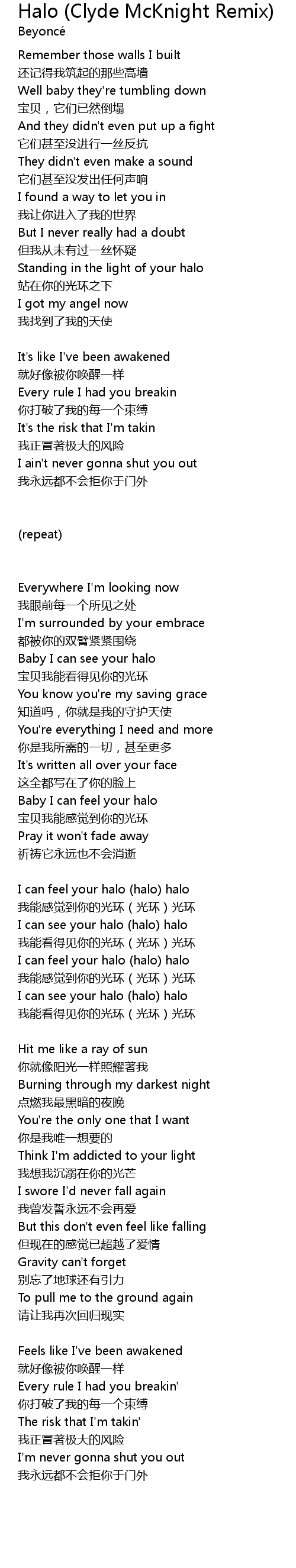 Halo (Clyde McKnight Remix) Lyrics