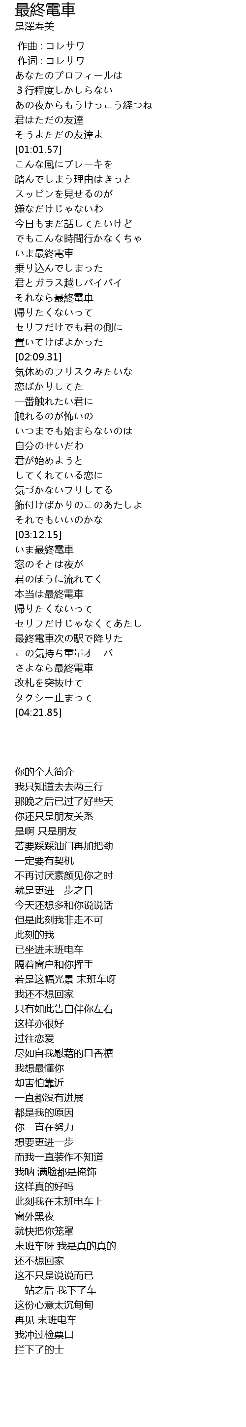 | [03:36.04] | běn dāng zuì zhōng diàn chē |