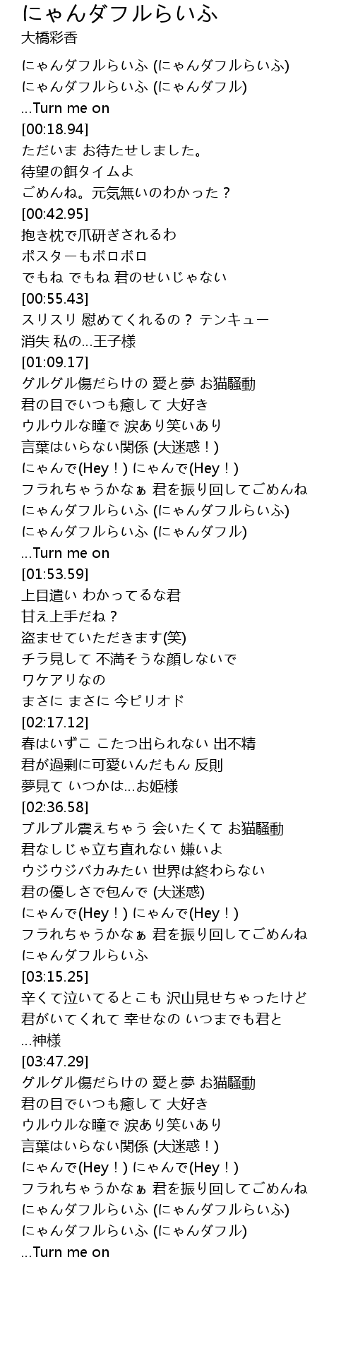 | [01:41.83] | にゃんダフルらいふ (にゃんダフルらいふ) |