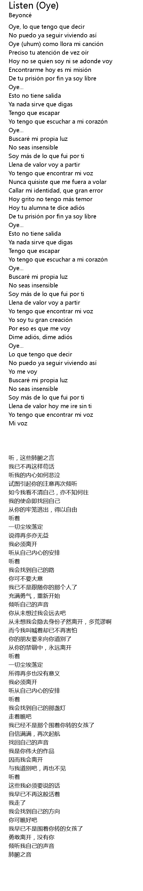 | Song | Listen (Oye) |