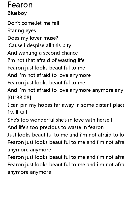 | [03:32.98] | Fearon just looks beautiful to me and i'm not afraid to love anymore |