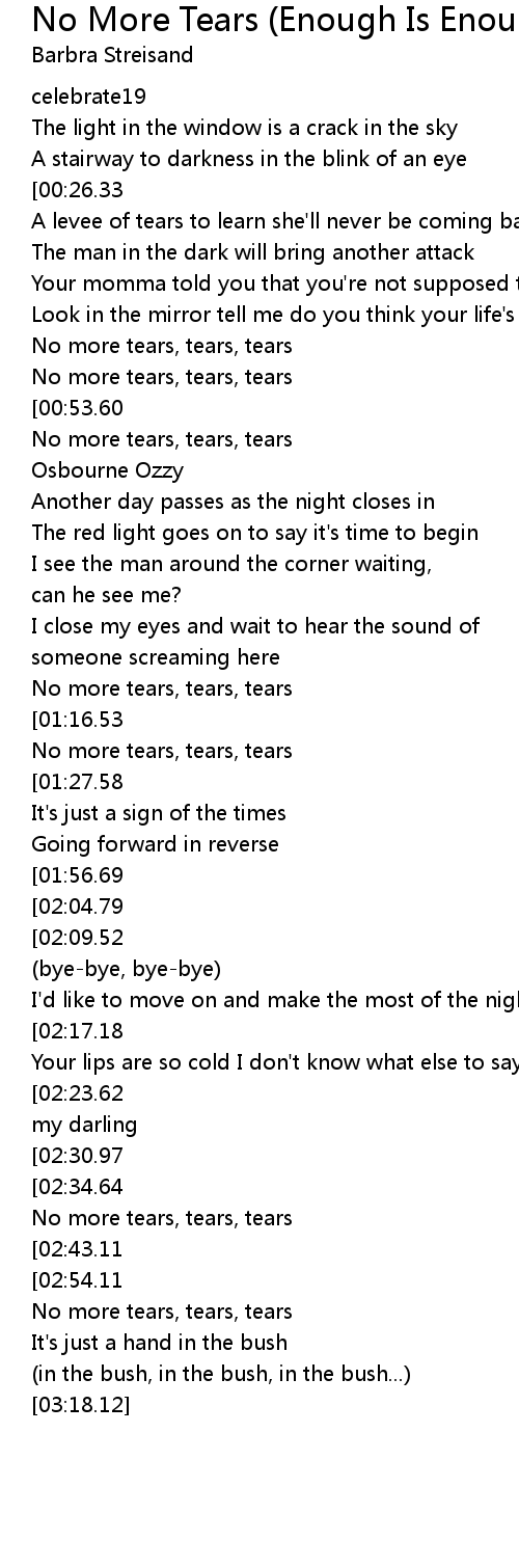 [01:15.39][01:16.53][01:18.72] No more tears, tears, tears