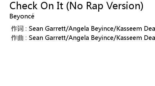 | [00:00.000] | 作词 : Sean Garrett/Angela Beyince/Kasseem Dean/Beyonce Knowles |