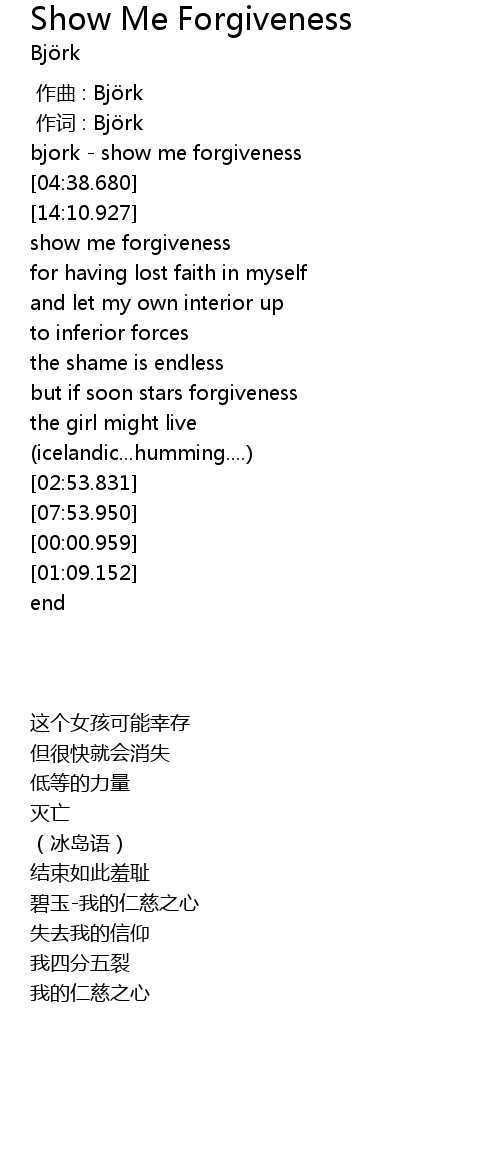| [07:20.001] | bjork show me forgiveness |