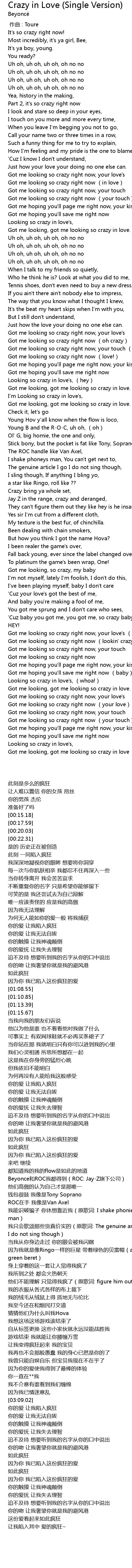 | [01:51.62] | Looking so crazy in love's, (hey) |