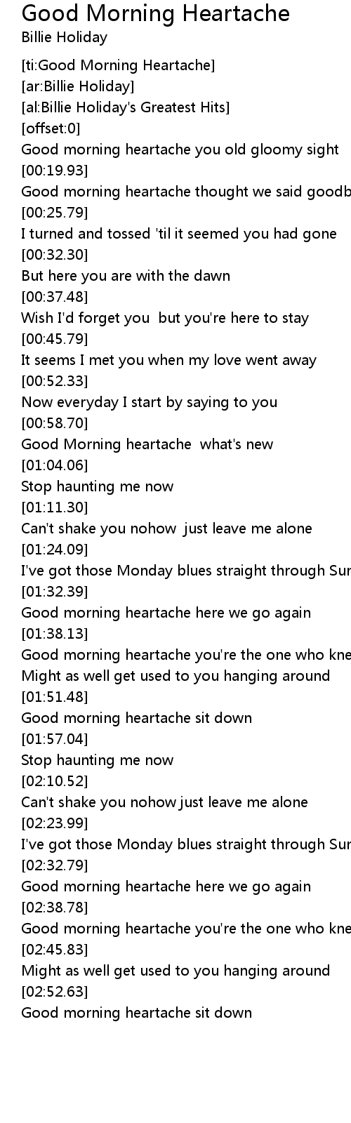 [ti:Good Morning Heartache] |