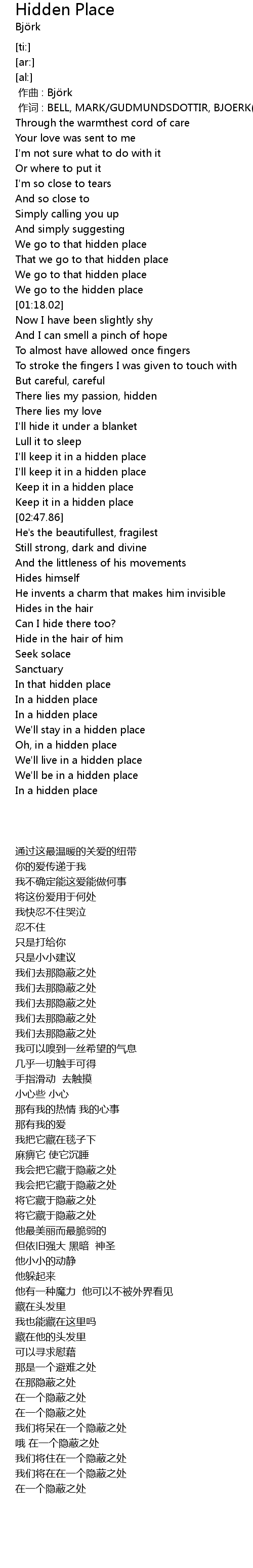 | [00:01.00] | zuò cí : BELL, MARK GUDMUNDSDOTTIR, BJOERK BJORK SIGSWORTH, GUY |
