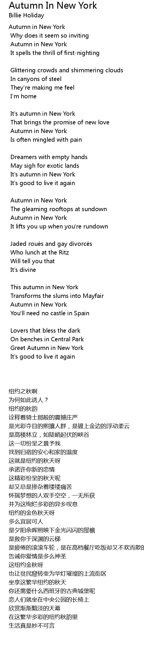 | Song | Autumn In New York |