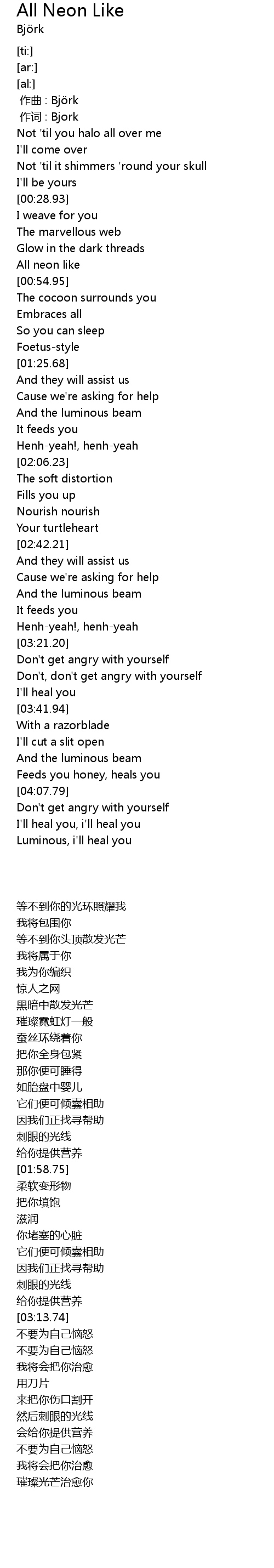 | [00:51.00] | All neon like |