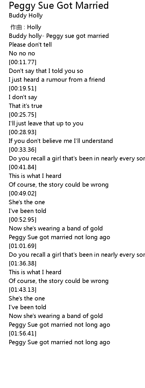 | [00:00.54] | Buddy holly- Peggy sue got married |