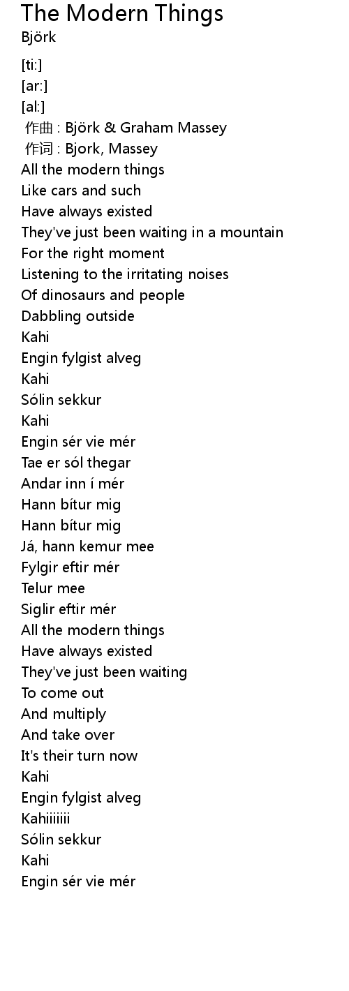 | [00:06.67] | All the modern things |