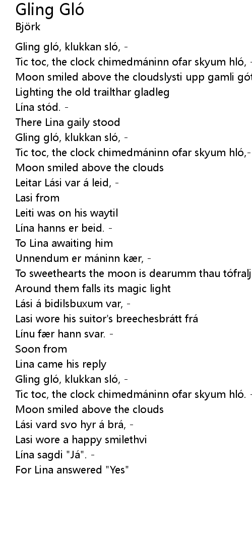 | Gling glo, klukkan slo, | |