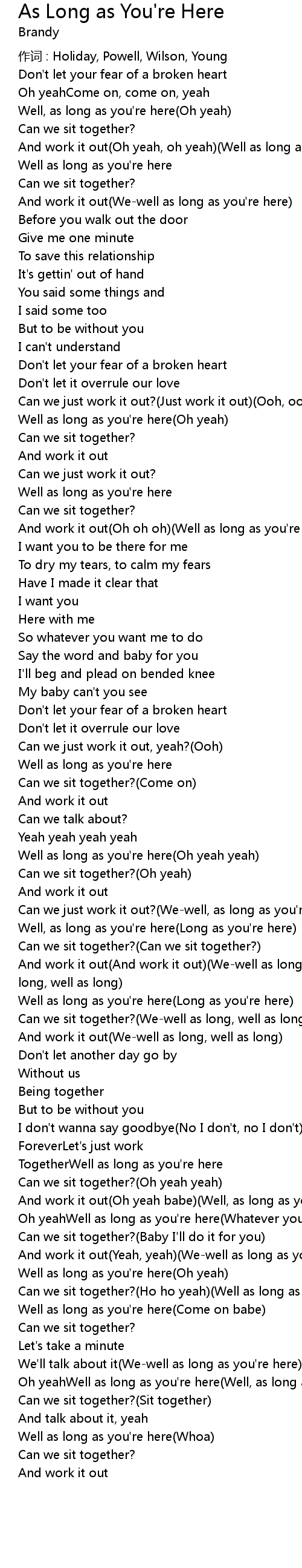 | And work it out And work it out Wewell as long as you' re here Wewell as long, well as long | |