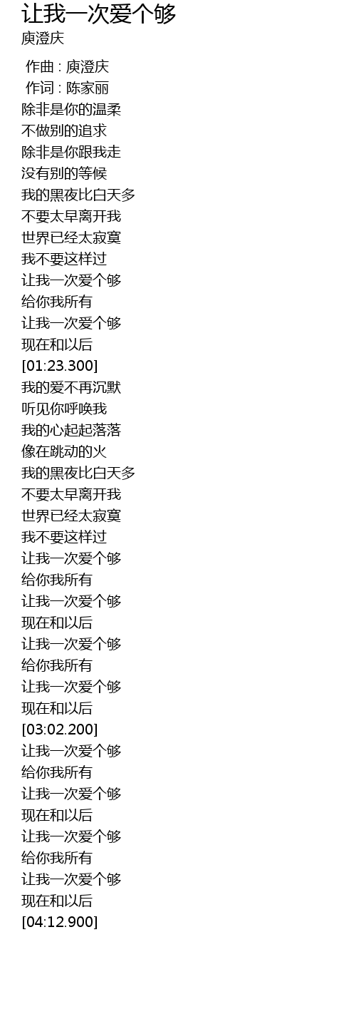 | [01:09.000] | ràng wǒ yī cì ài gè gòu |