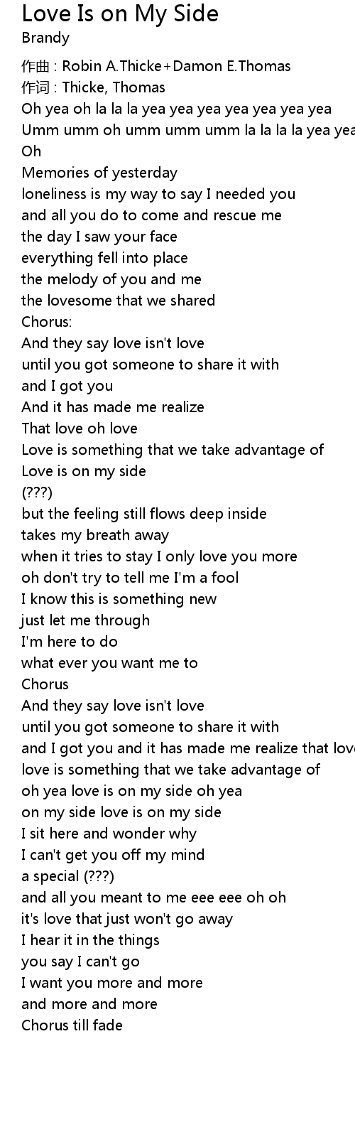 | Umm umm oh umm umm umm la la la la yea yea la la no no | |