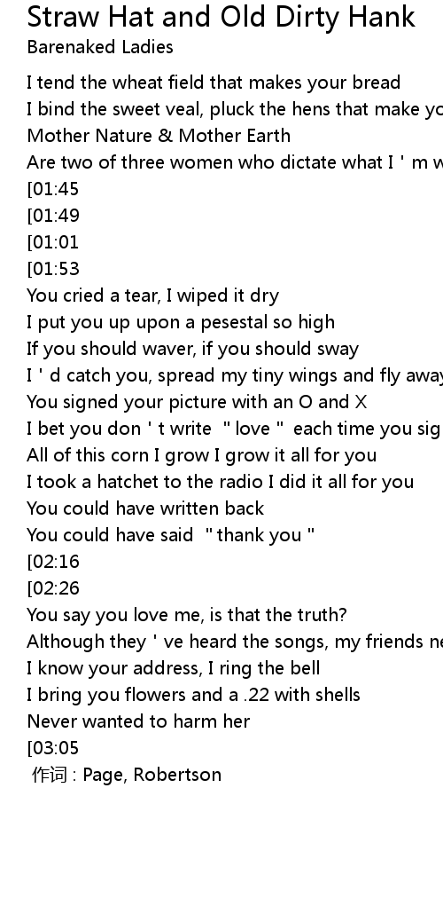 | Song | Straw Hat and Old Dirty Hank |