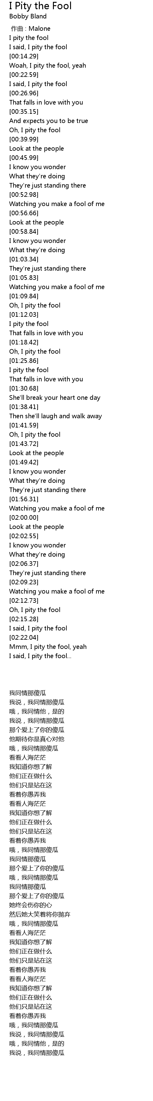 | [00:17.36] | Woah, I pity the fool, yeah |
