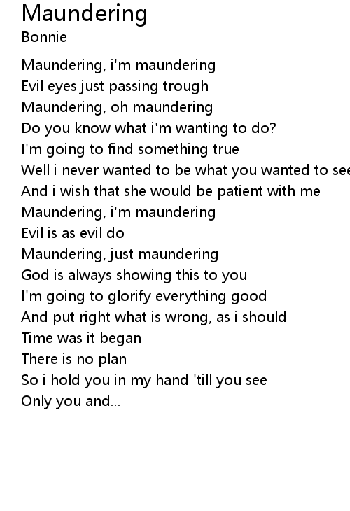 Maundering, oh maundering |