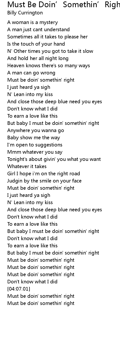 But baby I must be doin' somethin' right |