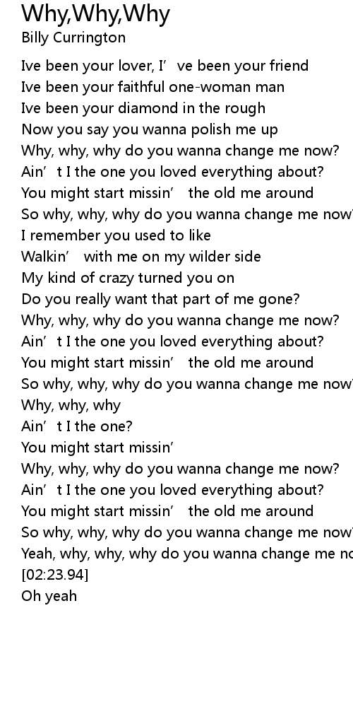 | [02:00.91] | Why, why, why do you wanna change me now? |