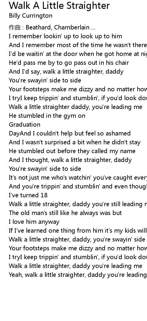| Yeah, walk a little straighter, daddy you' re leading me |