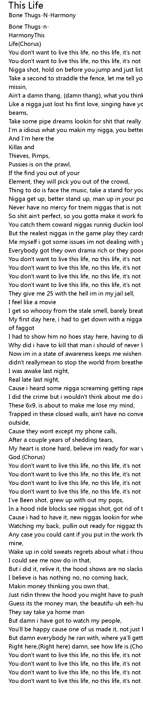 You don't want to live this life, no this life, it's not nice.(Layzie Bone) |