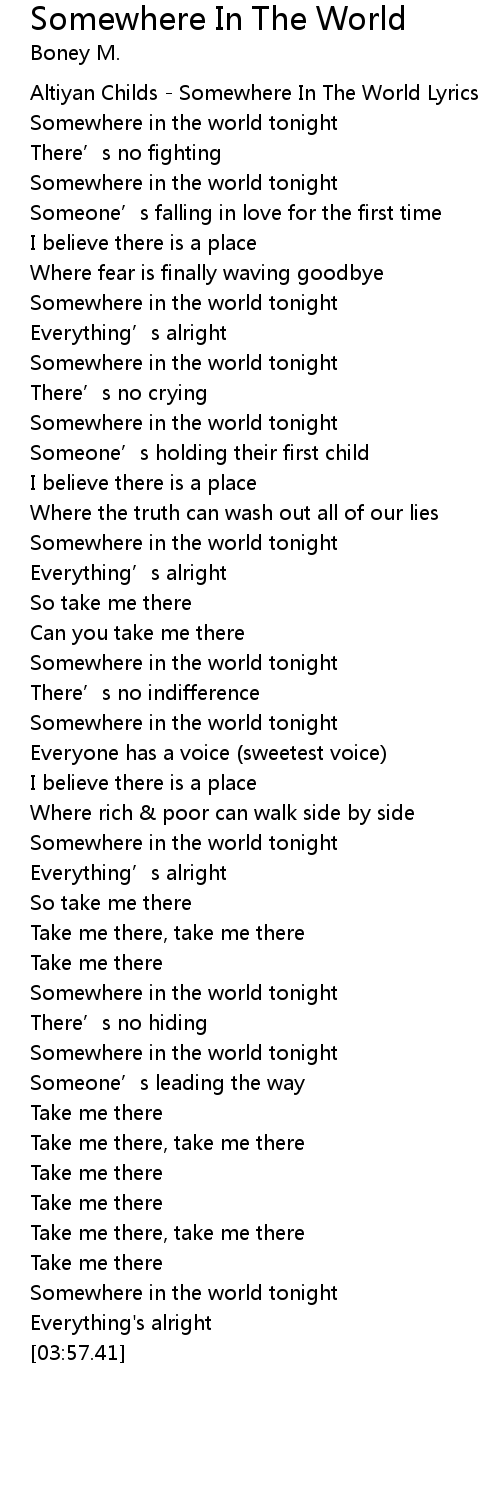 | [00:00.00] | Altiyan Childs Somewhere In The World Lyrics |