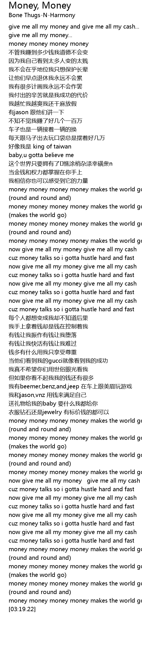 | [02:53.81] | now give me all my money give me all my cash |