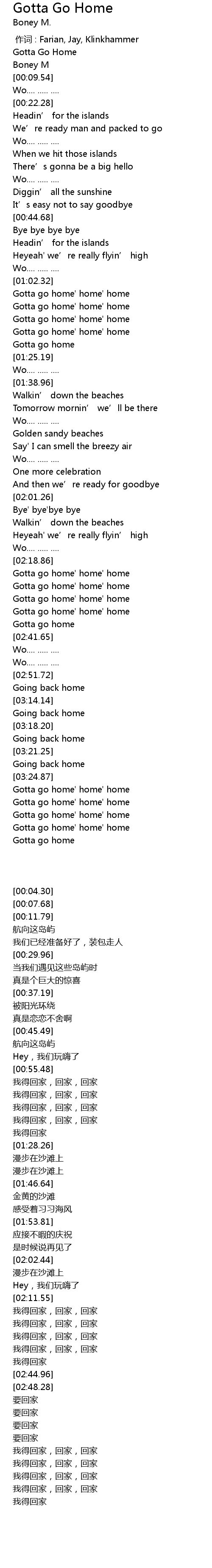 | [03:34.49] | Gotta go home' home' home |
