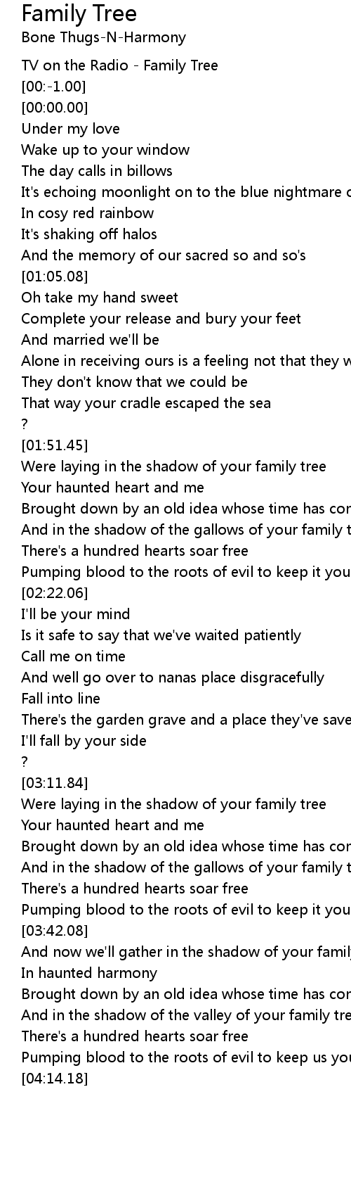 And now we'll gather in the shadow of your family tree |