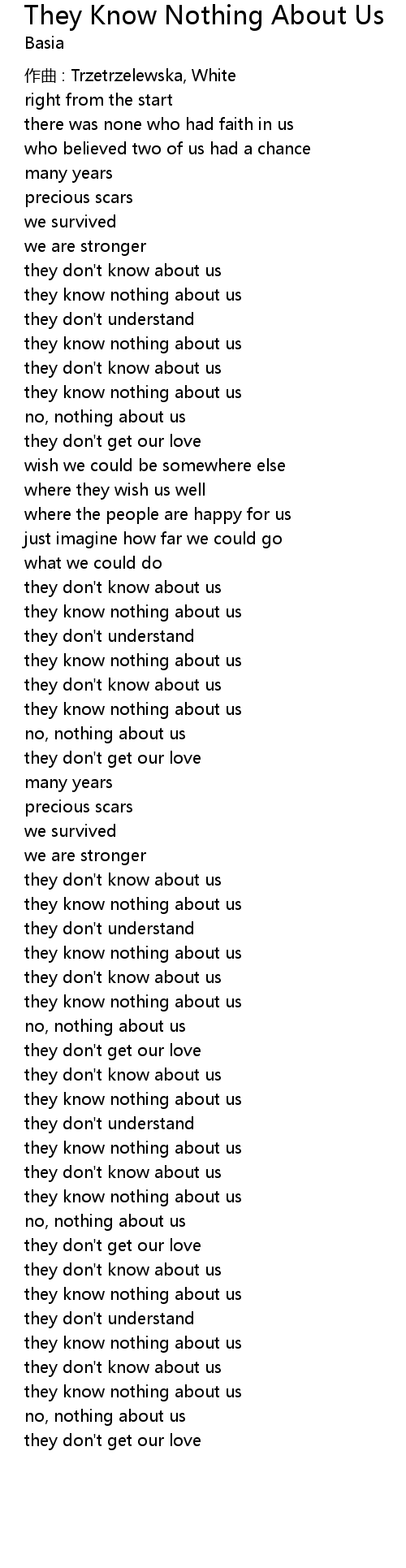 | Song | They Know Nothing About Us |