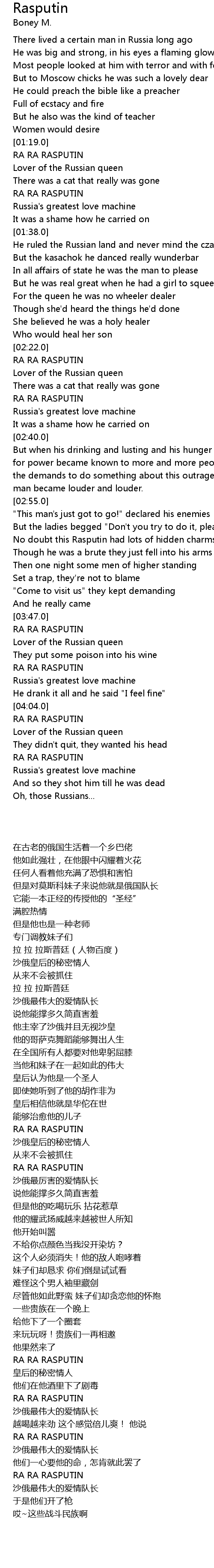 | [03:56.0] | RA RA RASPUTIN |