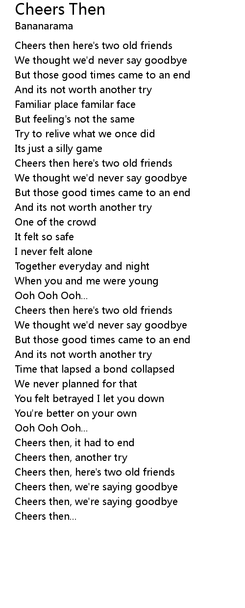 Cheers then here's two old friends |
