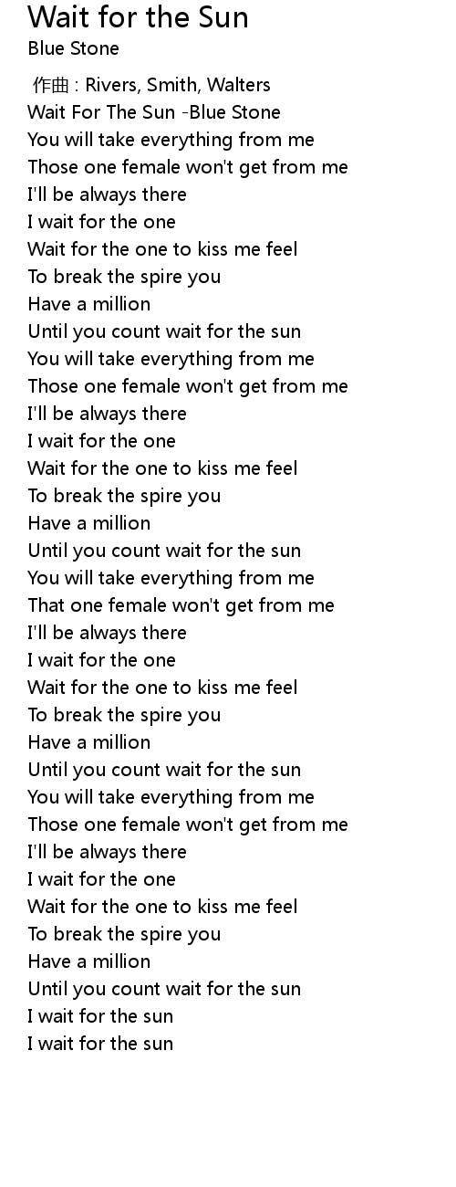 | [00:03.79] | Wait For The Sun Blue Stone |