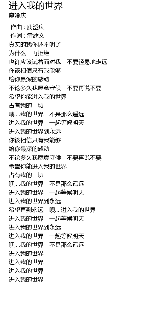 | [03:18.34] | 进入我的世界 一起等候明天 |