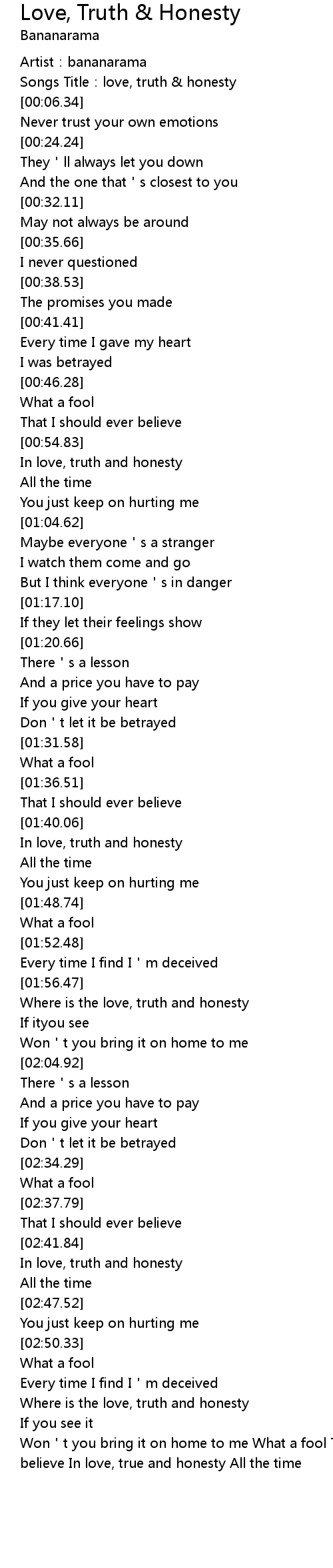 | [00:02.47] | Songs Title:love, truth & honesty |