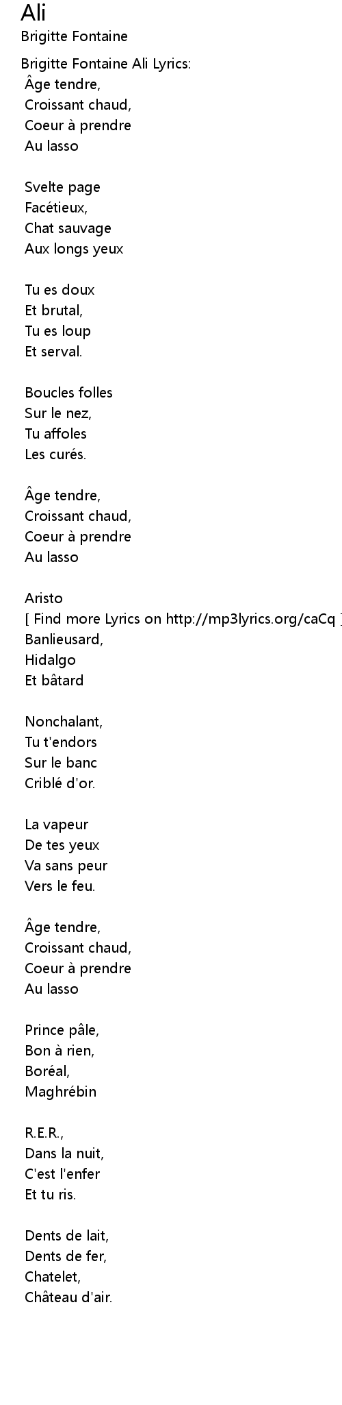 | Brigitte Fontaine Ali Lyrics: | |