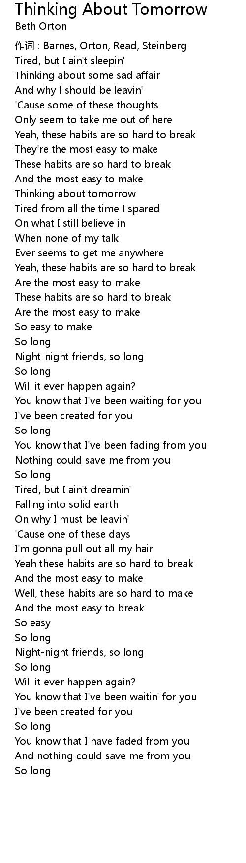 | Well, these habits are so hard to make | |