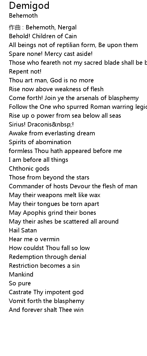 | zuò qǔ : Behemoth, Nergal | |
