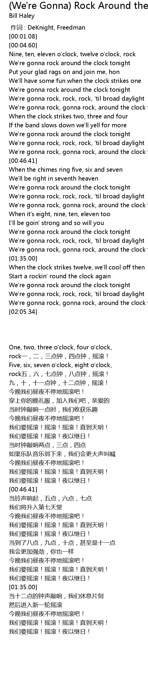 | [01:53.90] | We' re gonna rock around the clock tonight |