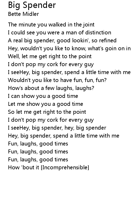 I seeHey, big spender, spend a little time with me