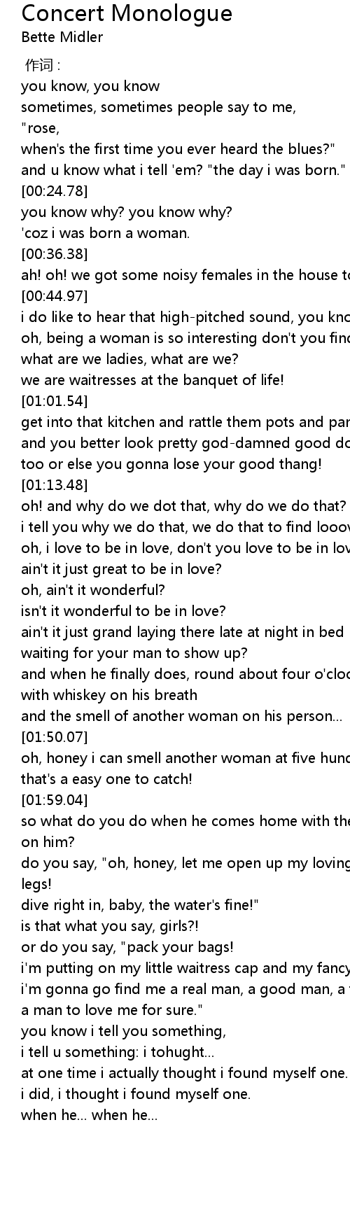 | [02:06.96] | do you say, " oh, honey, let me open up my loving arms and my loving legs! |