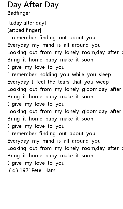 | [02:38.694] | Looking out from my lonely room, day after day |