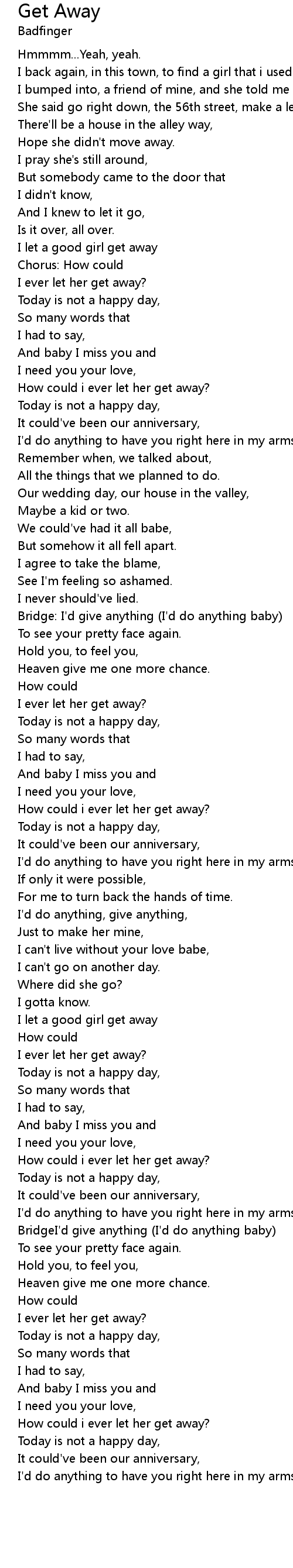| I let a good girl get away | |