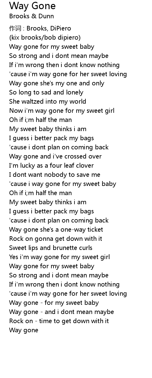 | 'cause i way gone for my sweet baby | |