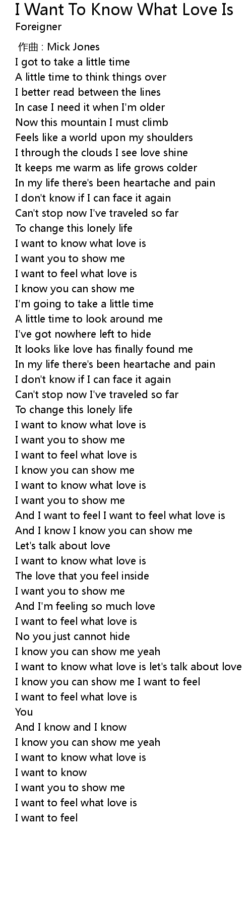 | [04:11.24] | I want to know what love is let' s talk about love |