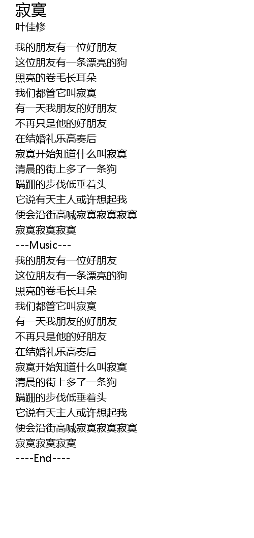 | [02:36.11] | 寂寞寂寞寂寞 |